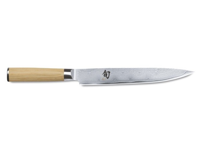 El acero VG MAX, con una dureza de 61 (±1) en la escala de HRC, forma el núcleo de todala hoja hasta el filo. Envuelto en 32 capas de acero de Damasco, el cuchillo debe su anatomíain comparable a una hoja estable que, gracias a sus dos componentes, es dura y elástica al mismo tiempo. Las hojas Shun Classic son corte occidental.