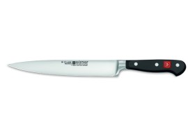 La Serie Wüsthof Classic es la más extensa de la firma. Los cuchillos de cocina de esta serie son robustos, afilados y funcionales con una diverisdad de modelos con más de 70 formas de hojas. Forjados de una pieza de acero inoxidable para una máxima comodidad en el corte. El mango está hecho de polipropileno con tres remaches que le dan una apariencia clásica. Como todos los cuchillos de cocina de Wüsthof, los cuchillos de la serie Classic también están afilados con precisión láser y PE·tec.